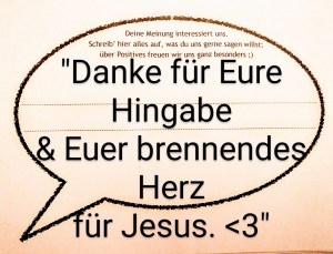 „Für mich ist es eines der schönsten Dinge im Dienst der Evangelisation den Menschen zu begegnen. Ganz gleich ob ich aktiv über Jesus sprechen darf oder ich sie darauf hinweise, die Kirche besuchen zu können, um dort durch die Musik mit Gottes Gegenwart erfüllt zu werden. Und manchmal ist es einfach nur ein Verschenken einer Kerze.